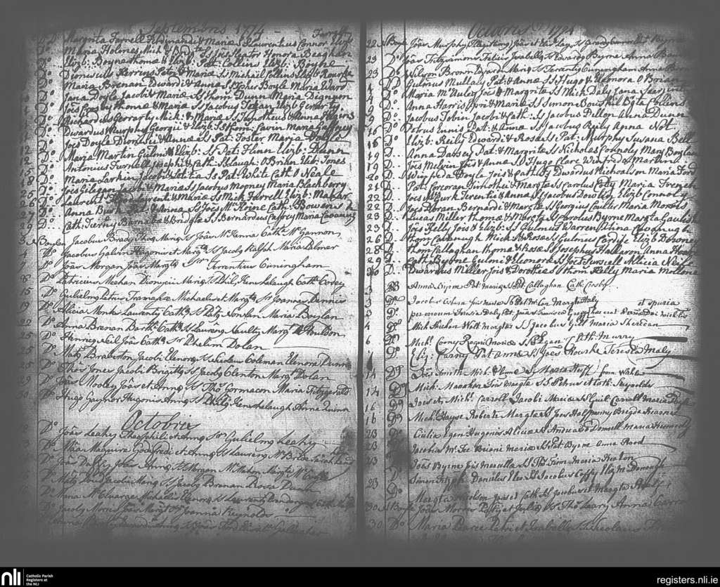 St. Andrew's, Dublin city; County of Dublin; Archdiocese of Dublin. Baptisms, Sep. 1774 to Oct. 1774