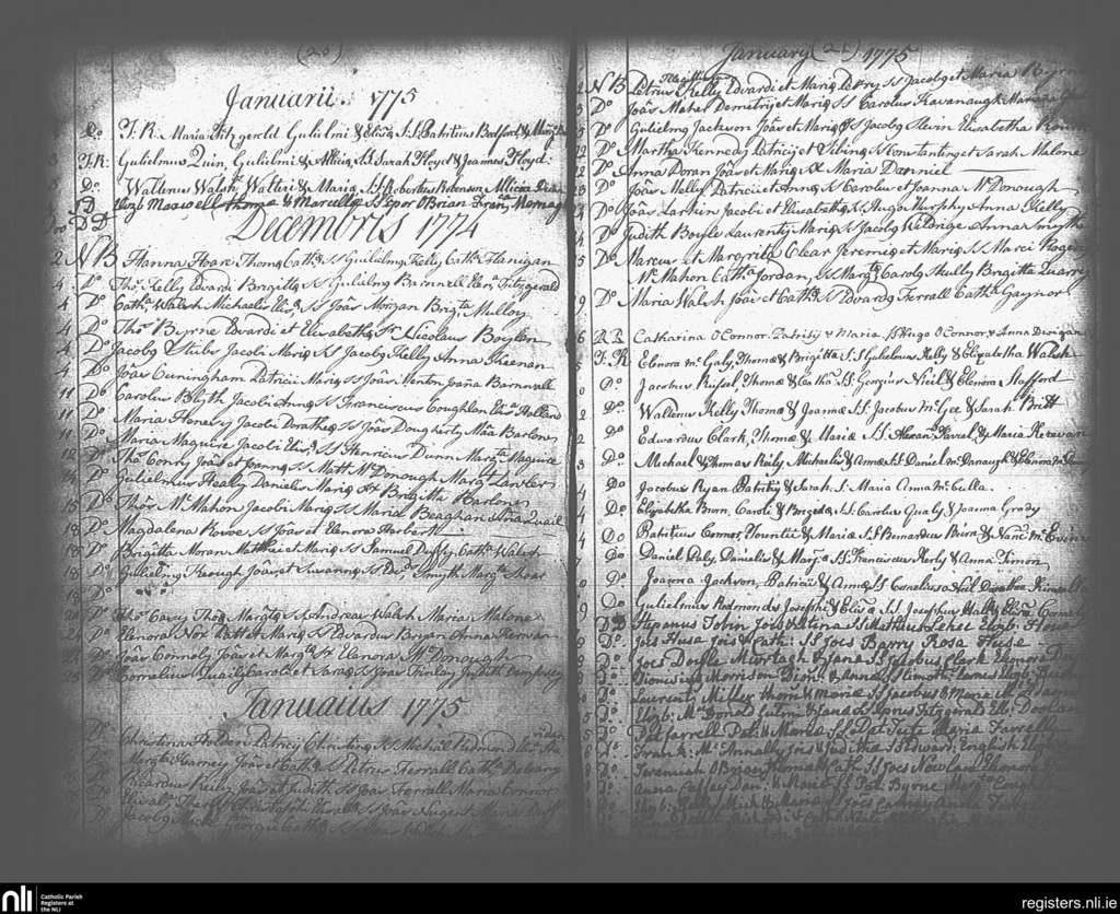 St. Andrew's, Dublin city; County of Dublin; Archdiocese of Dublin. Baptisms, Dec. 1774 to Jan. 1775