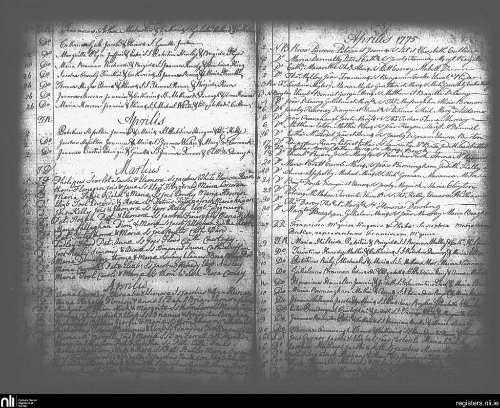 St. Andrew's, Dublin city; County of Dublin; Archdiocese of Dublin. Baptisms, Mar. 1775 to Apr. 1775