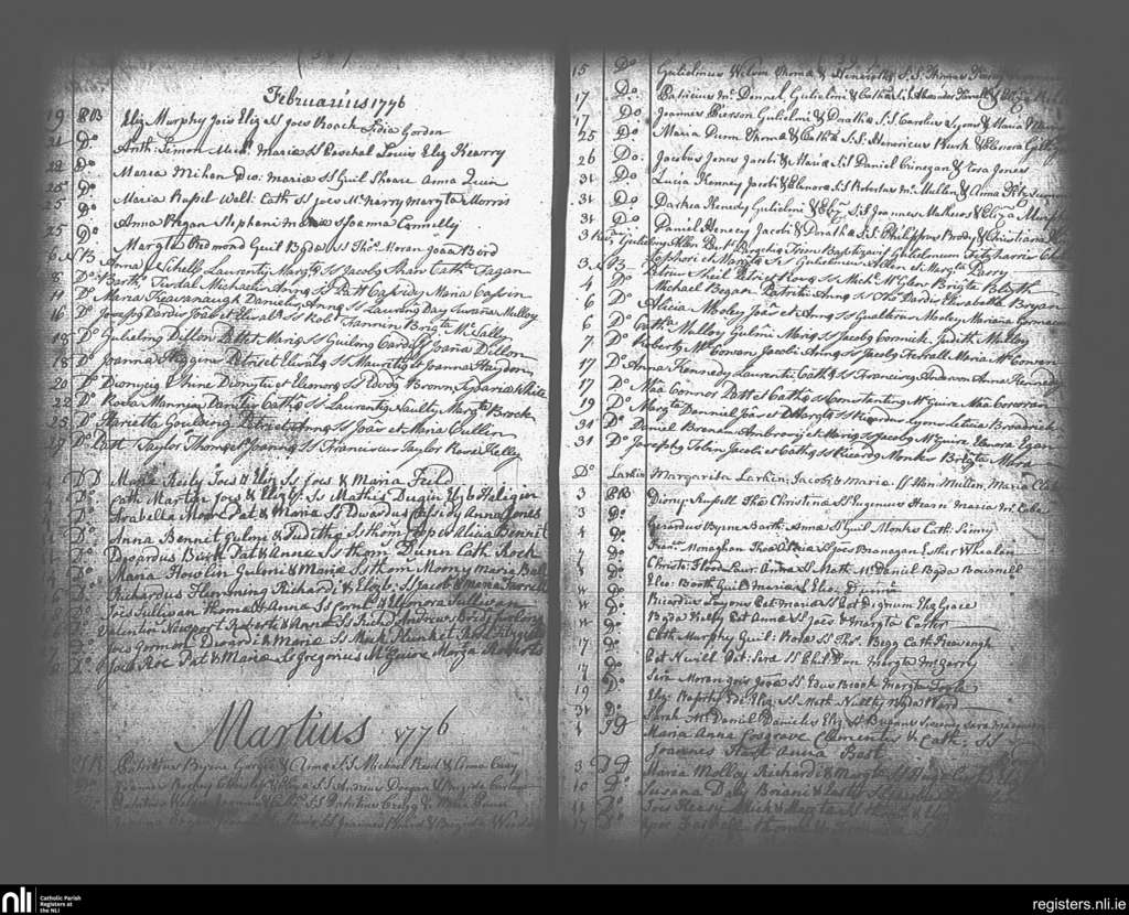 St. Andrew's, Dublin city; County of Dublin; Archdiocese of Dublin. Baptisms, Feb. 1776 to Mar. 1776
