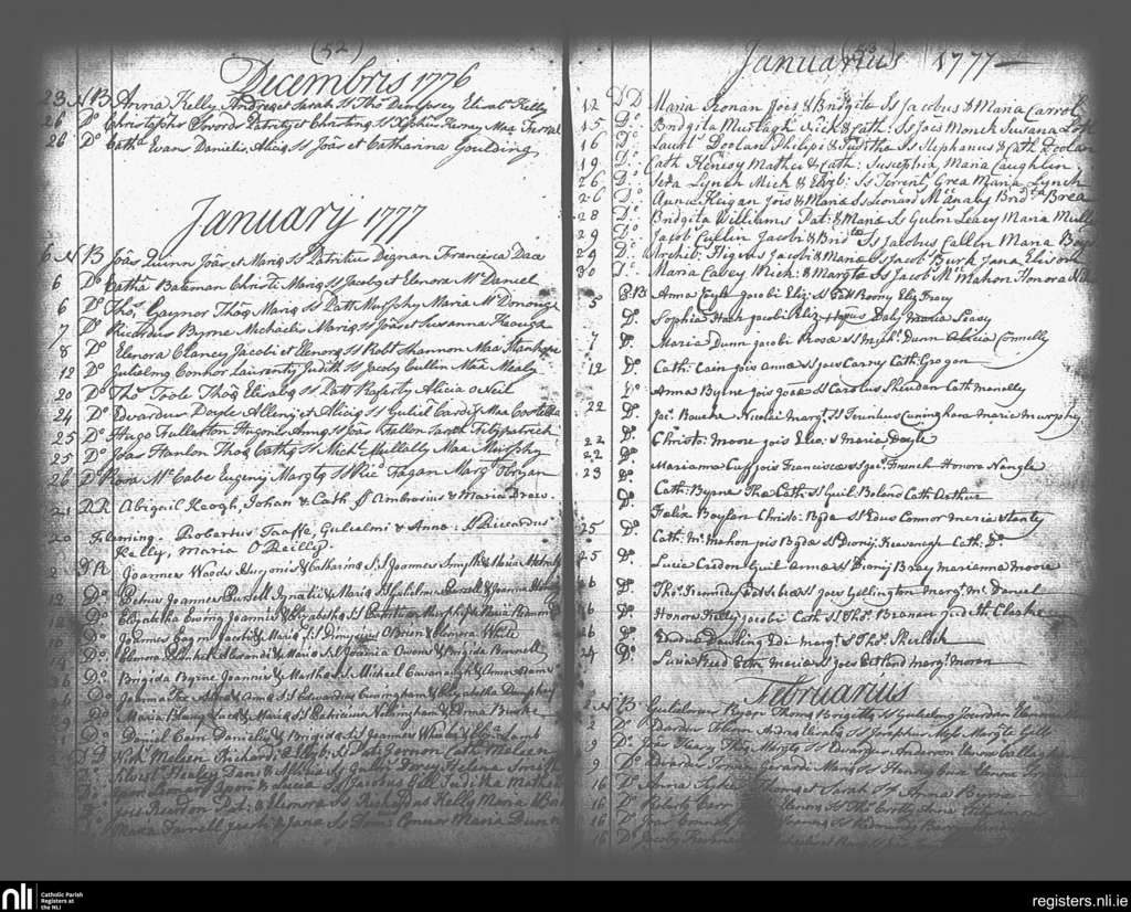 St. Andrew's, Dublin city; County of Dublin; Archdiocese of Dublin. Baptisms, Dec. 1776 to Feb. 1777