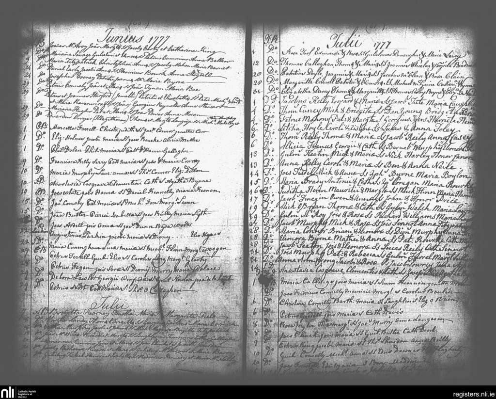 St. Andrew's, Dublin city; County of Dublin; Archdiocese of Dublin. Baptisms, June 1777 to July 1777