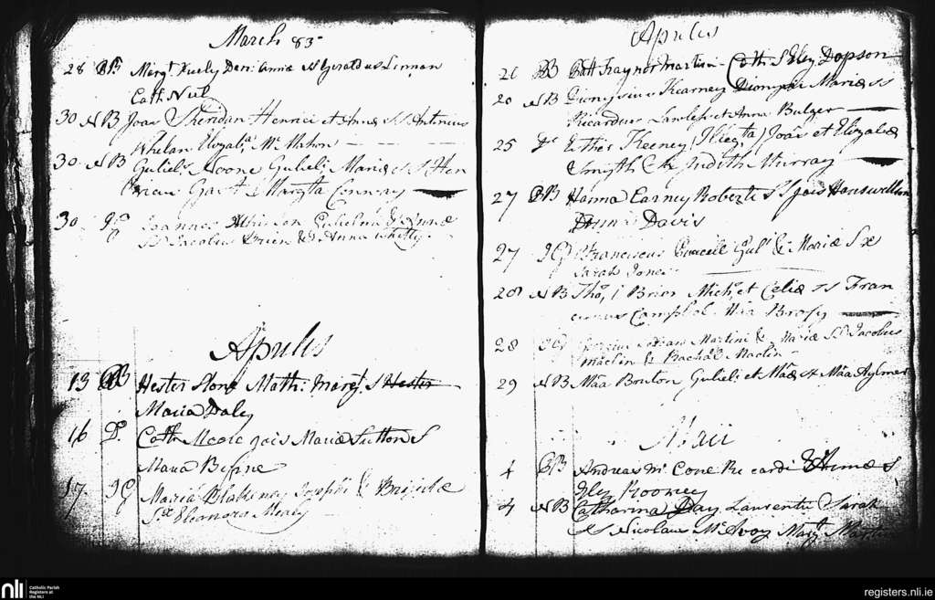 St. Andrew's, Dublin city; County of Dublin; Archdiocese of Dublin. Baptisms, Mar. 1783 to May 1783