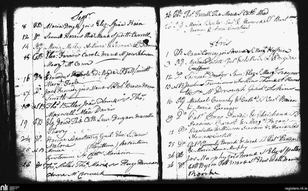St. Andrew's, Dublin city; County of Dublin; Archdiocese of Dublin. Baptisms, Sep. 1783 to Oct. 1783
