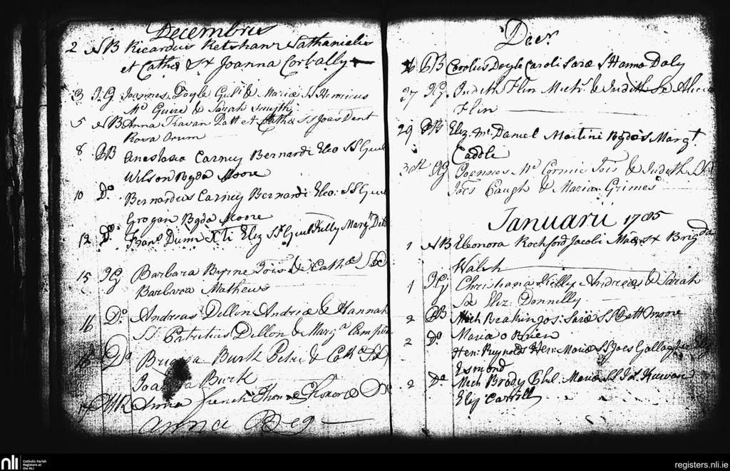 St. Andrew's, Dublin city; County of Dublin; Archdiocese of Dublin. Baptisms, Dec. 1784 to Jan. 1785
