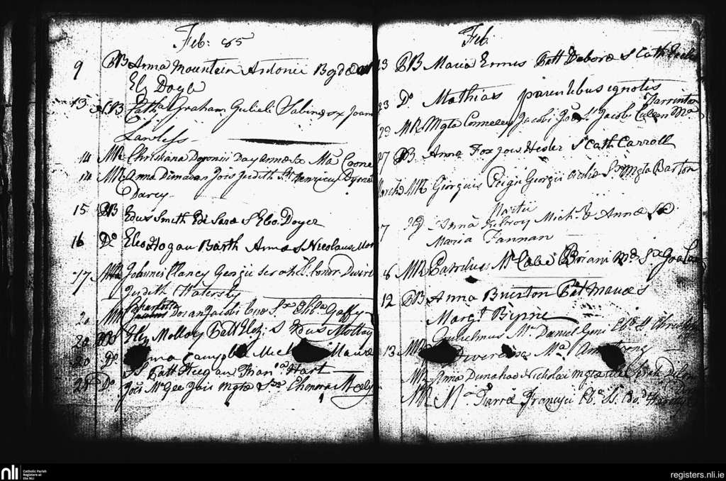 St. Andrew's, Dublin city; County of Dublin; Archdiocese of Dublin. Baptisms, Feb. 1785 to Mar. 1785