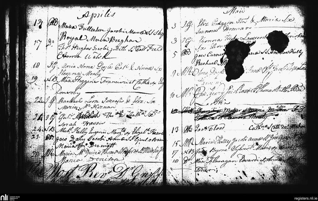 St. Andrew's, Dublin city; County of Dublin; Archdiocese of Dublin. Baptisms, Apr. 1785 to May 1785