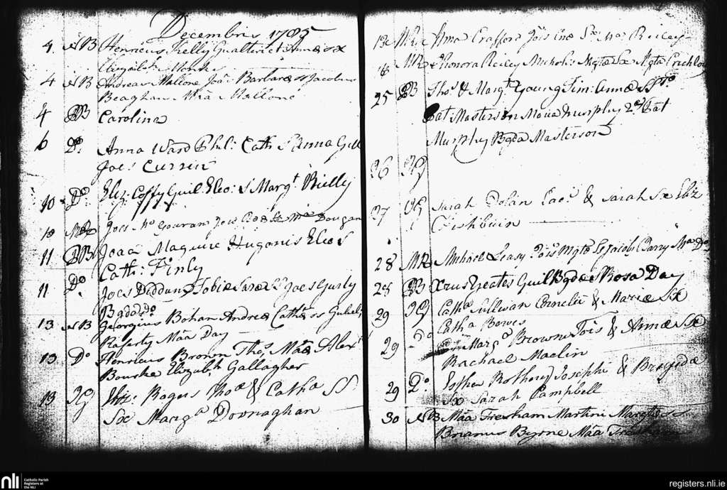 St. Andrew's, Dublin city; County of Dublin; Archdiocese of Dublin. Baptisms, Dec. 1785