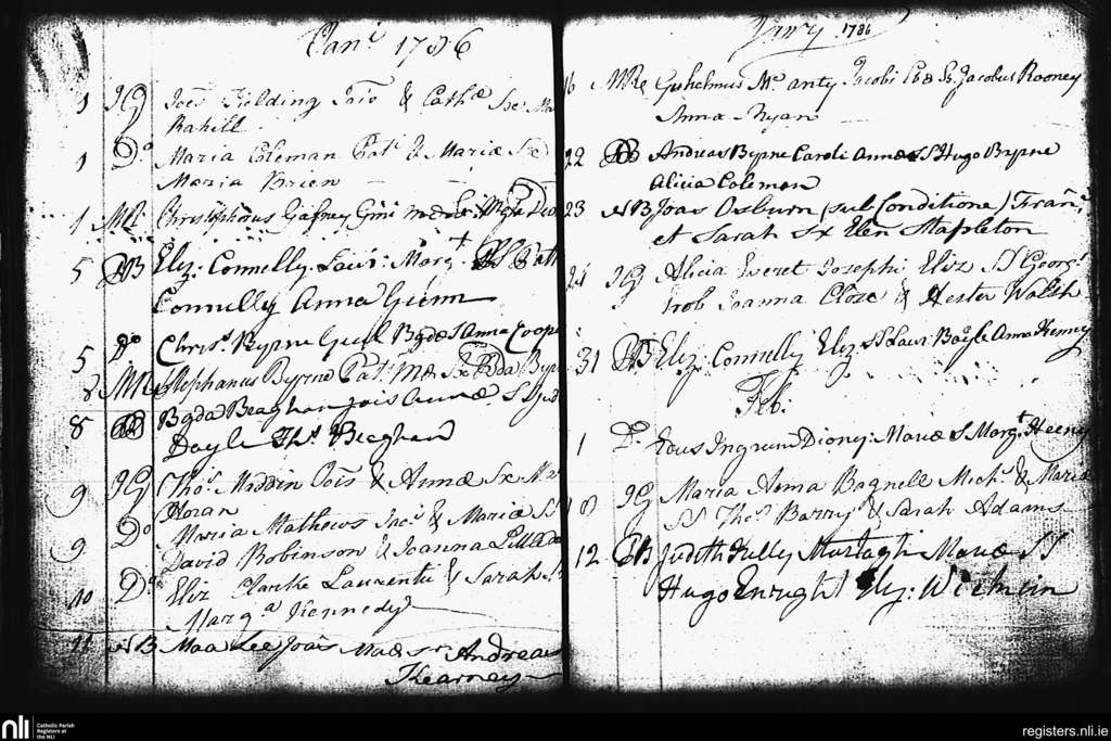 St. Andrew's, Dublin city; County of Dublin; Archdiocese of Dublin. Baptisms, Jan. 1786 to Feb. 1786