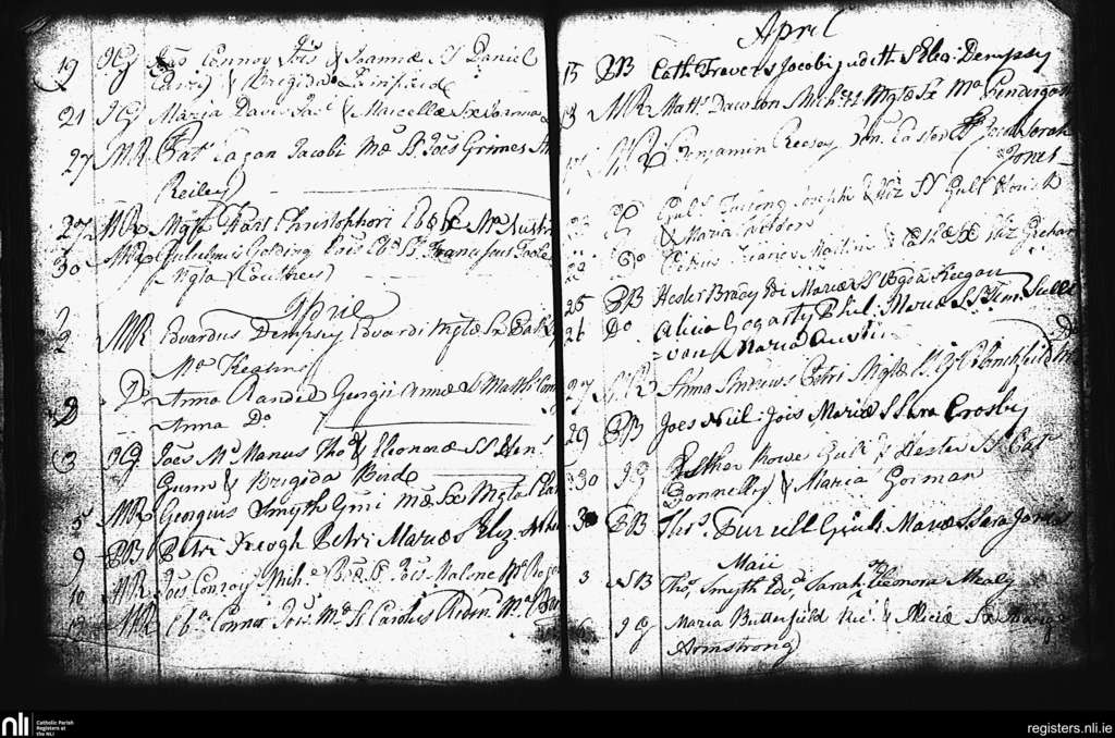 St. Andrew's, Dublin city; County of Dublin; Archdiocese of Dublin. Baptisms, Mar. 1786 to May 1786