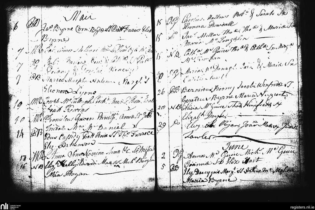 St. Andrew's, Dublin city; County of Dublin; Archdiocese of Dublin. Baptisms, May 1786 to June 1786