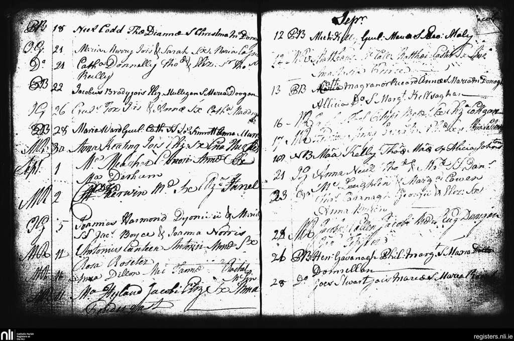 St. Andrew's, Dublin city; County of Dublin; Archdiocese of Dublin. Baptisms, Aug. 1786 to Sep. 1786