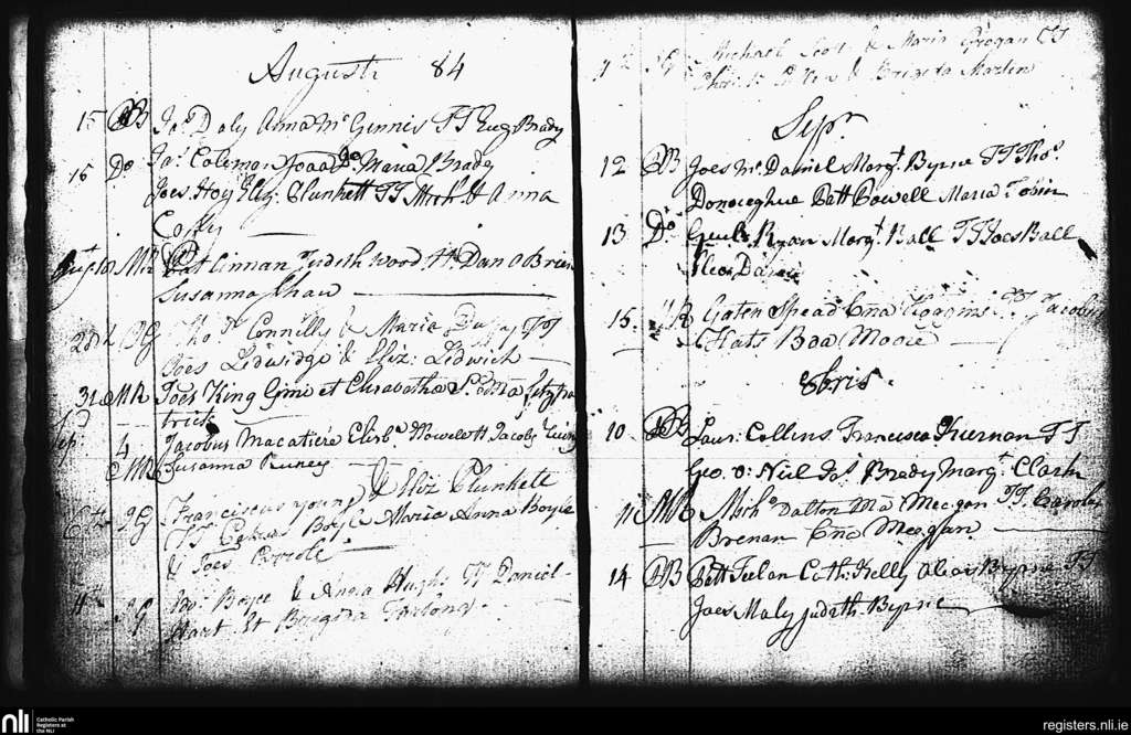 St. Andrew's, Dublin city; County of Dublin; Archdiocese of Dublin. Marriages, Aug. 1784 to Oct. 1784