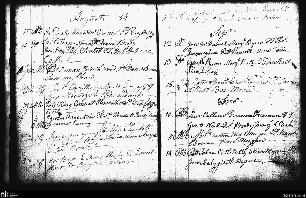 St. Andrew's, Dublin city; County of Dublin; Archdiocese of Dublin. Marriages, Aug. 1784 to Oct. 1784