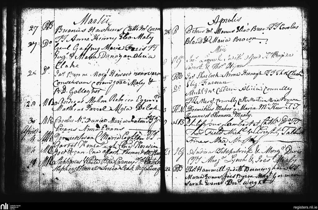 St. Andrew's, Dublin city; County of Dublin; Archdiocese of Dublin. Marriages, Mar. 1785 to May 1785