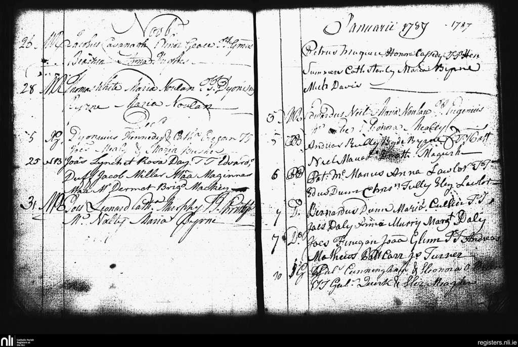 St. Andrew's, Dublin city; County of Dublin; Archdiocese of Dublin. Marriages, Nov. 1786 to Jan. 1787