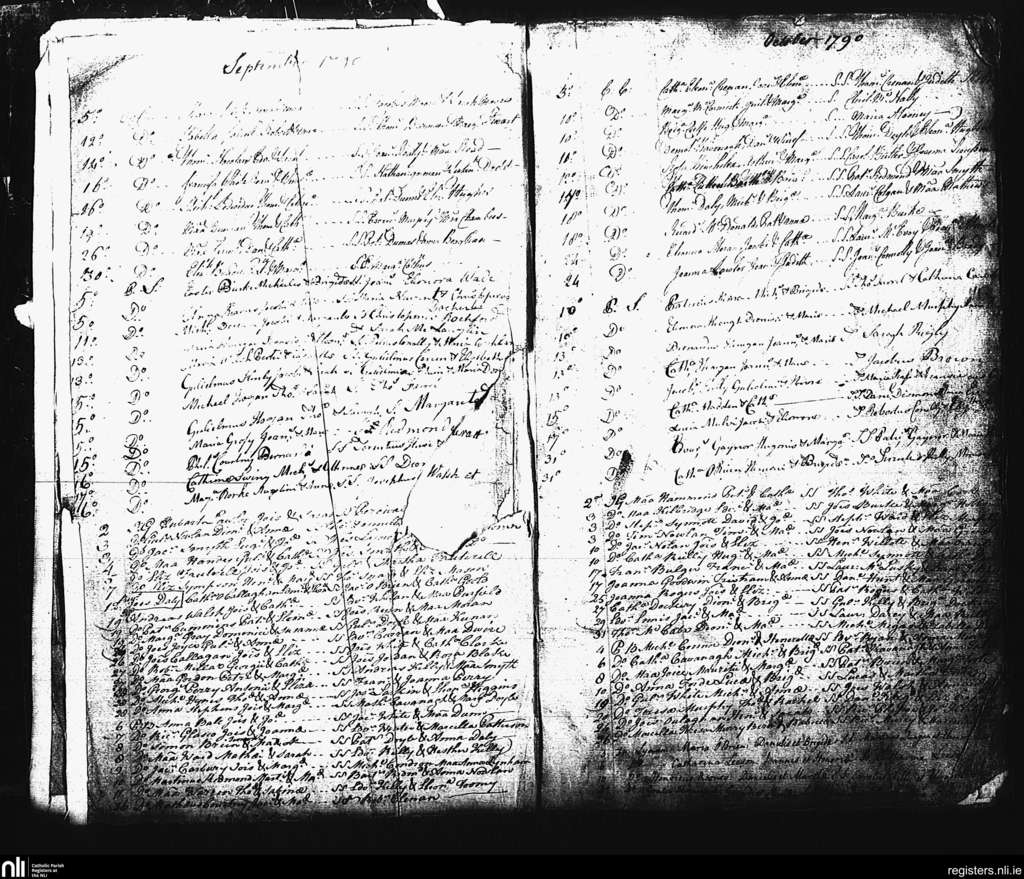 St. Andrew's, Dublin city; County of Dublin; Archdiocese of Dublin. Baptisms, Sep. 1790 to Oct. 1790