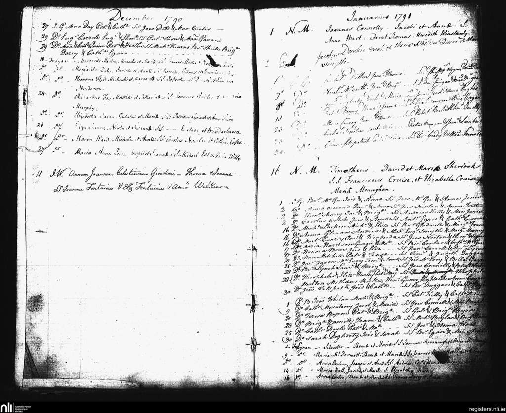 St. Andrew's, Dublin city; County of Dublin; Archdiocese of Dublin. Baptisms, Dec. 1790 to Jan. 1791