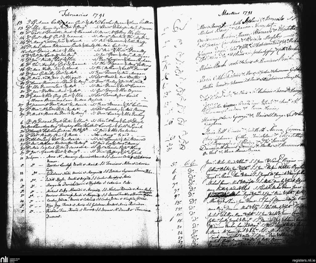 St. Andrew's, Dublin city; County of Dublin; Archdiocese of Dublin. Baptisms, Feb. 1791 to Mar. 1791