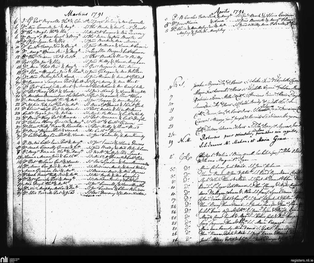St. Andrew's, Dublin city; County of Dublin; Archdiocese of Dublin. Baptisms, Mar. 1791 to Apr. 1791