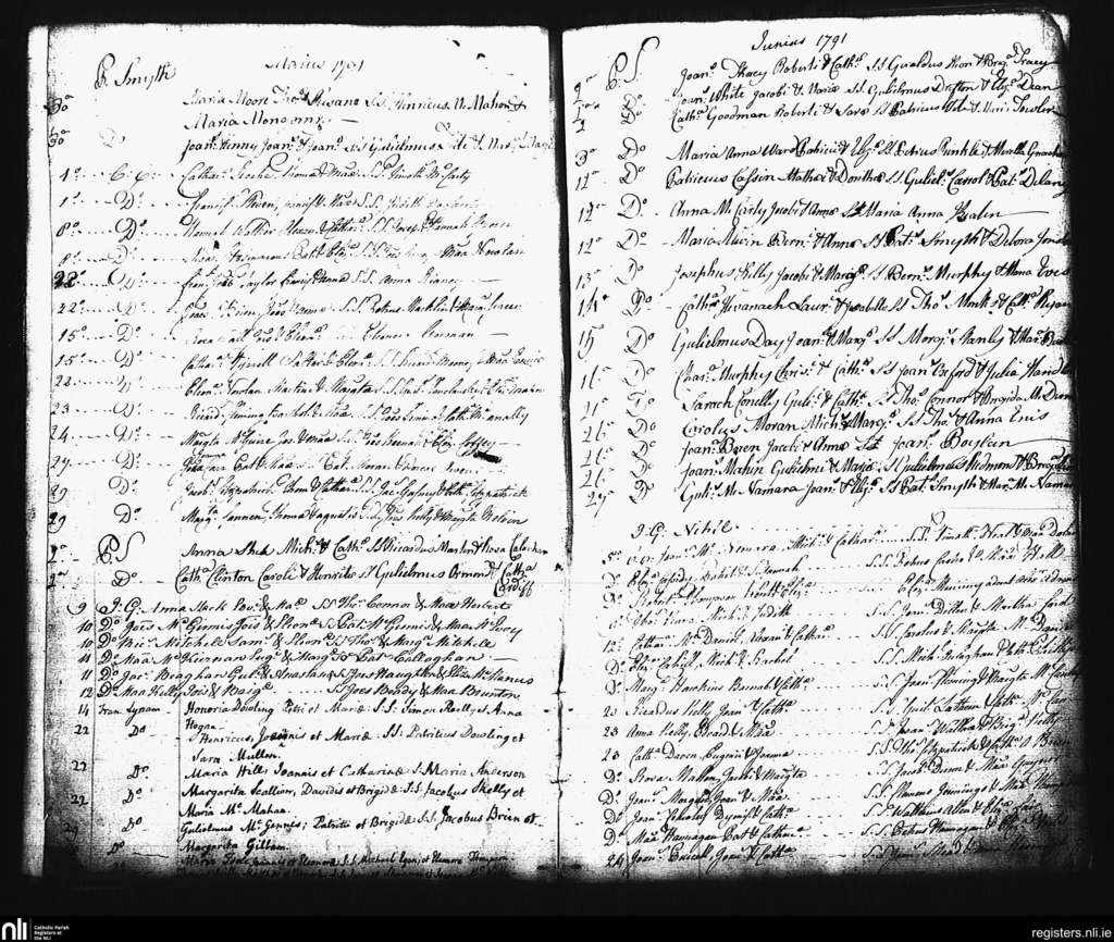 St. Andrew's, Dublin city; County of Dublin; Archdiocese of Dublin. Baptisms, May 1791 to June 1791