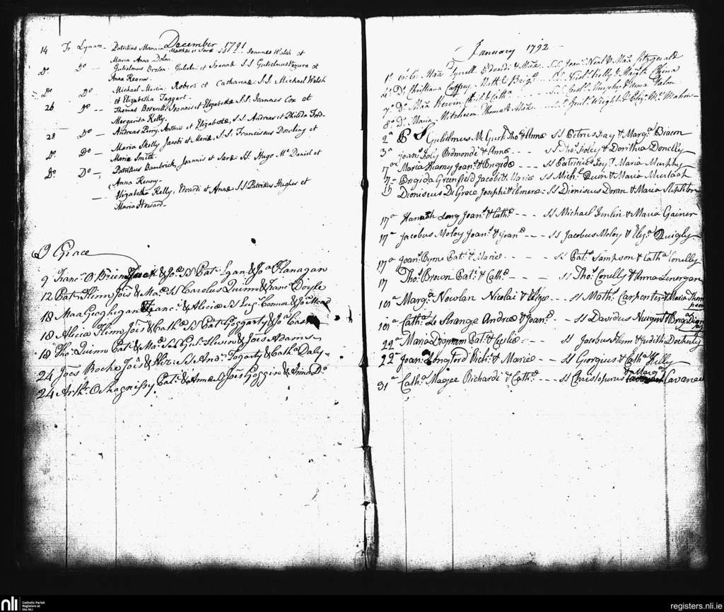 St. Andrew's, Dublin city; County of Dublin; Archdiocese of Dublin. Baptisms, Dec. 1791 to Jan. 1792