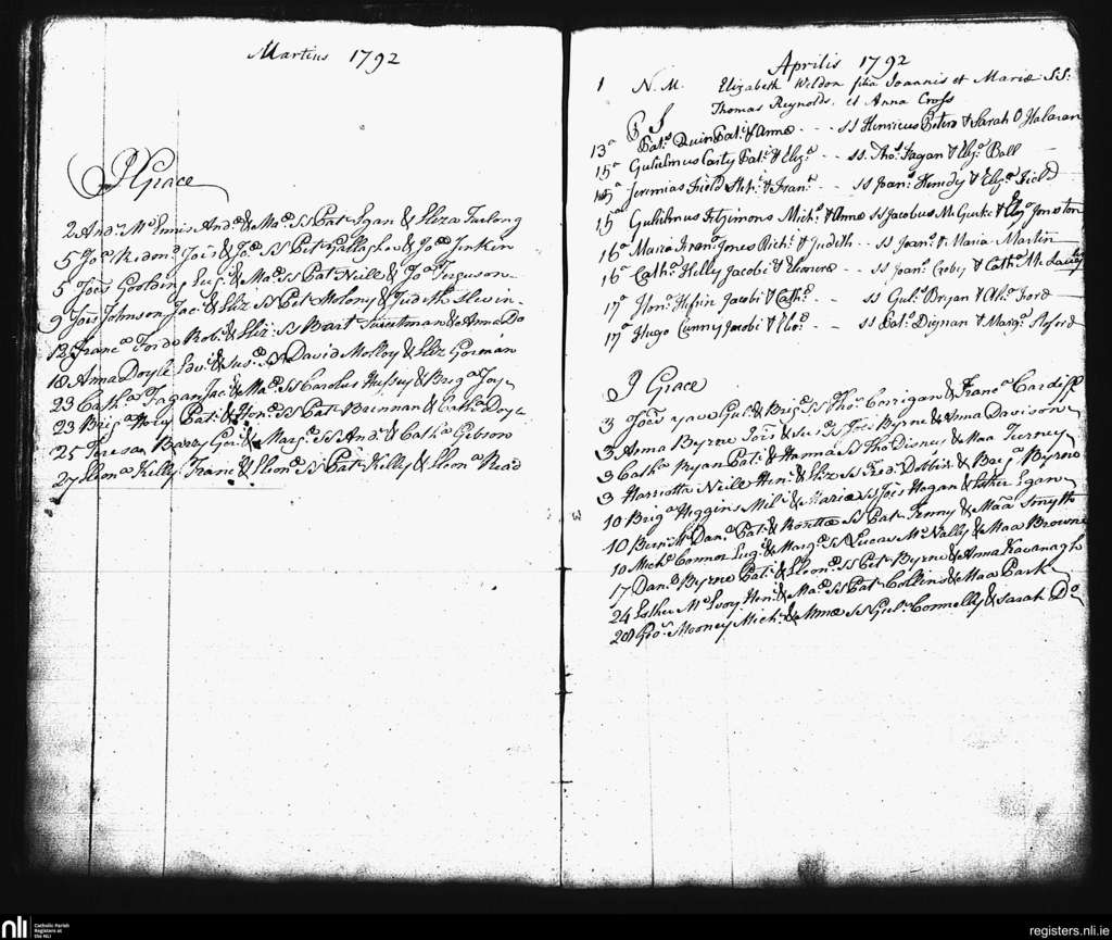 St. Andrew's, Dublin city; County of Dublin; Archdiocese of Dublin. Baptisms, Mar. 1792 to Apr. 1792