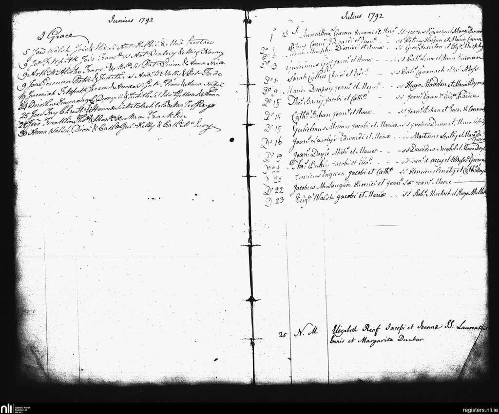 St. Andrew's, Dublin city; County of Dublin; Archdiocese of Dublin. Baptisms, June 1792 to July 1792