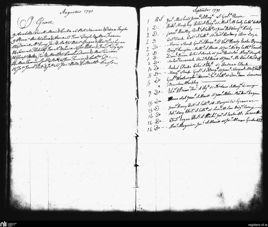St. Andrew's, Dublin city; County of Dublin; Archdiocese of Dublin. Baptisms, Aug. 1793 to Sep. 1793