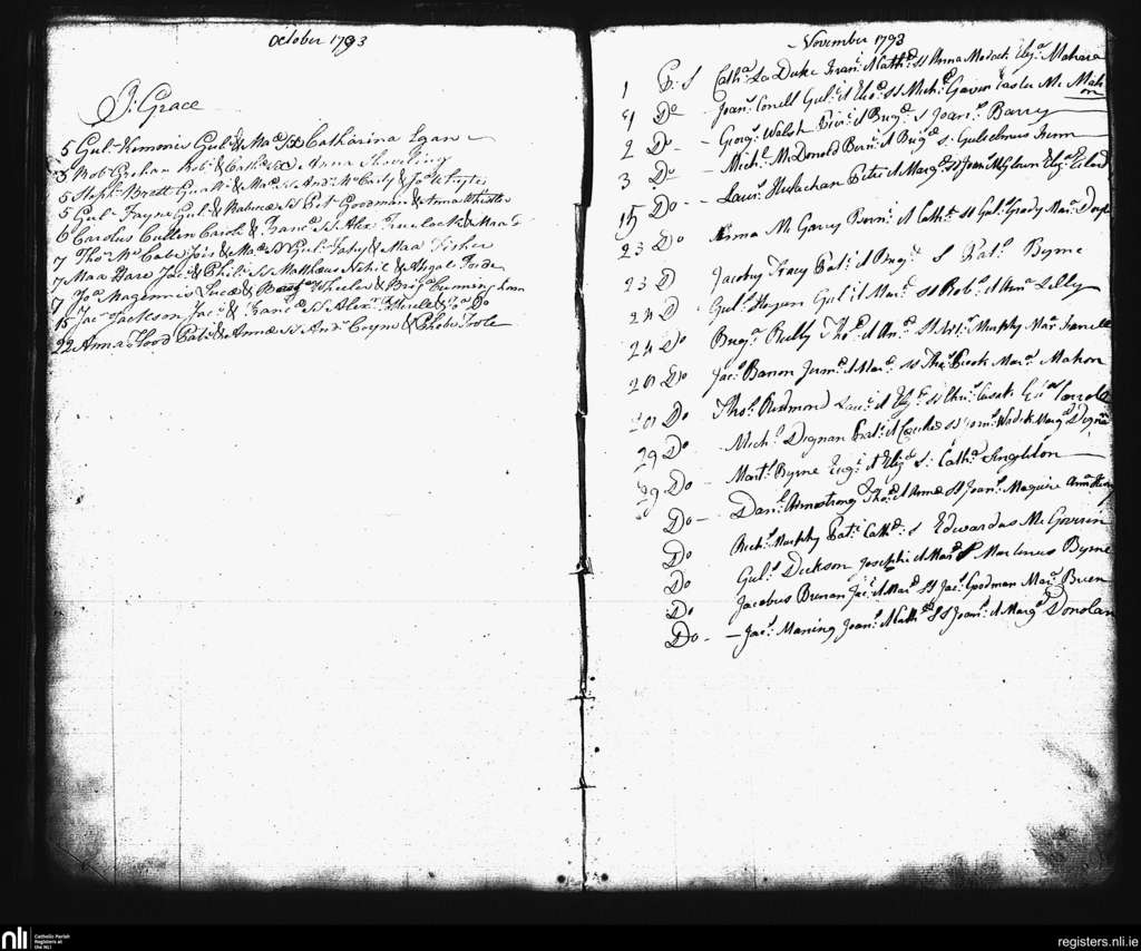 St. Andrew's, Dublin city; County of Dublin; Archdiocese of Dublin. Baptisms, Oct. 1793 to Nov. 1793