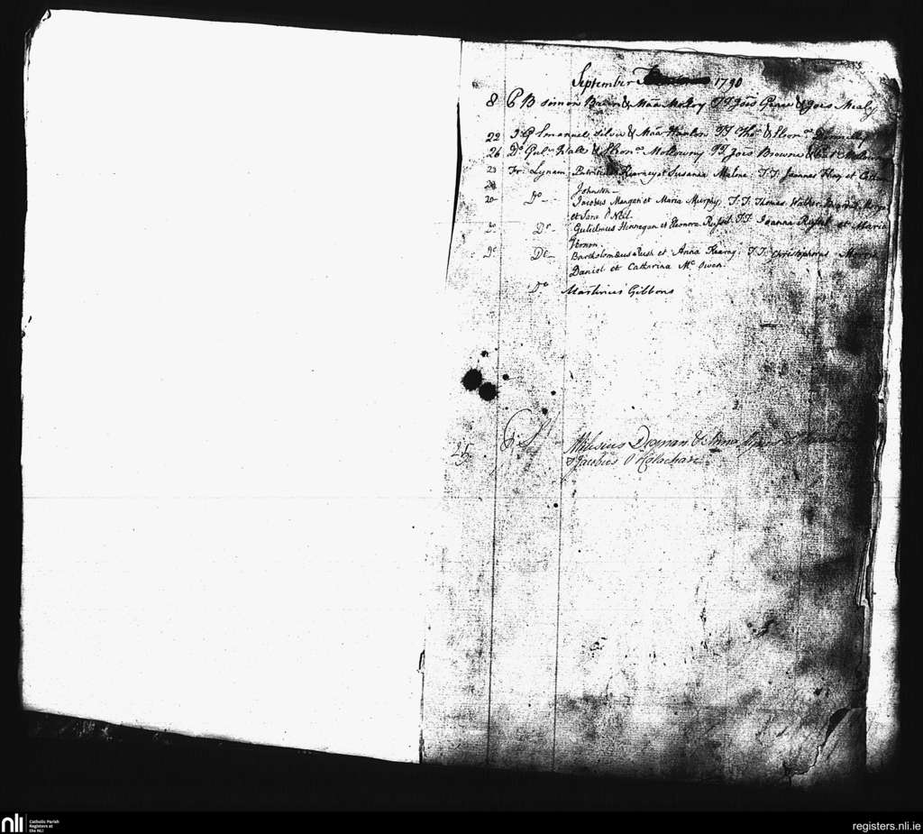St. Andrew's, Dublin city; County of Dublin; Archdiocese of Dublin. Marriages, Sep. 1790