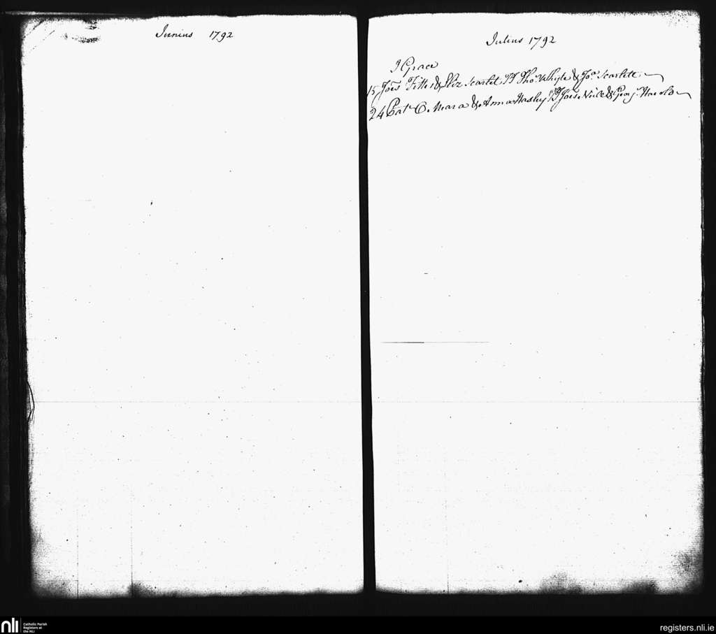 St. Andrew's, Dublin city; County of Dublin; Archdiocese of Dublin. Marriages, June 1792 to July 1792