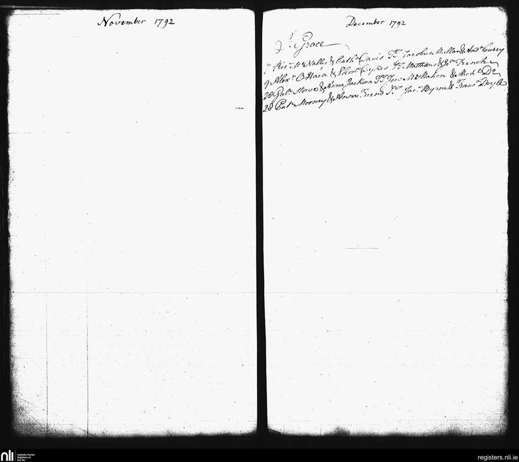 St. Andrew's, Dublin city; County of Dublin; Archdiocese of Dublin. Marriages, Nov. 1792 to Dec. 1792