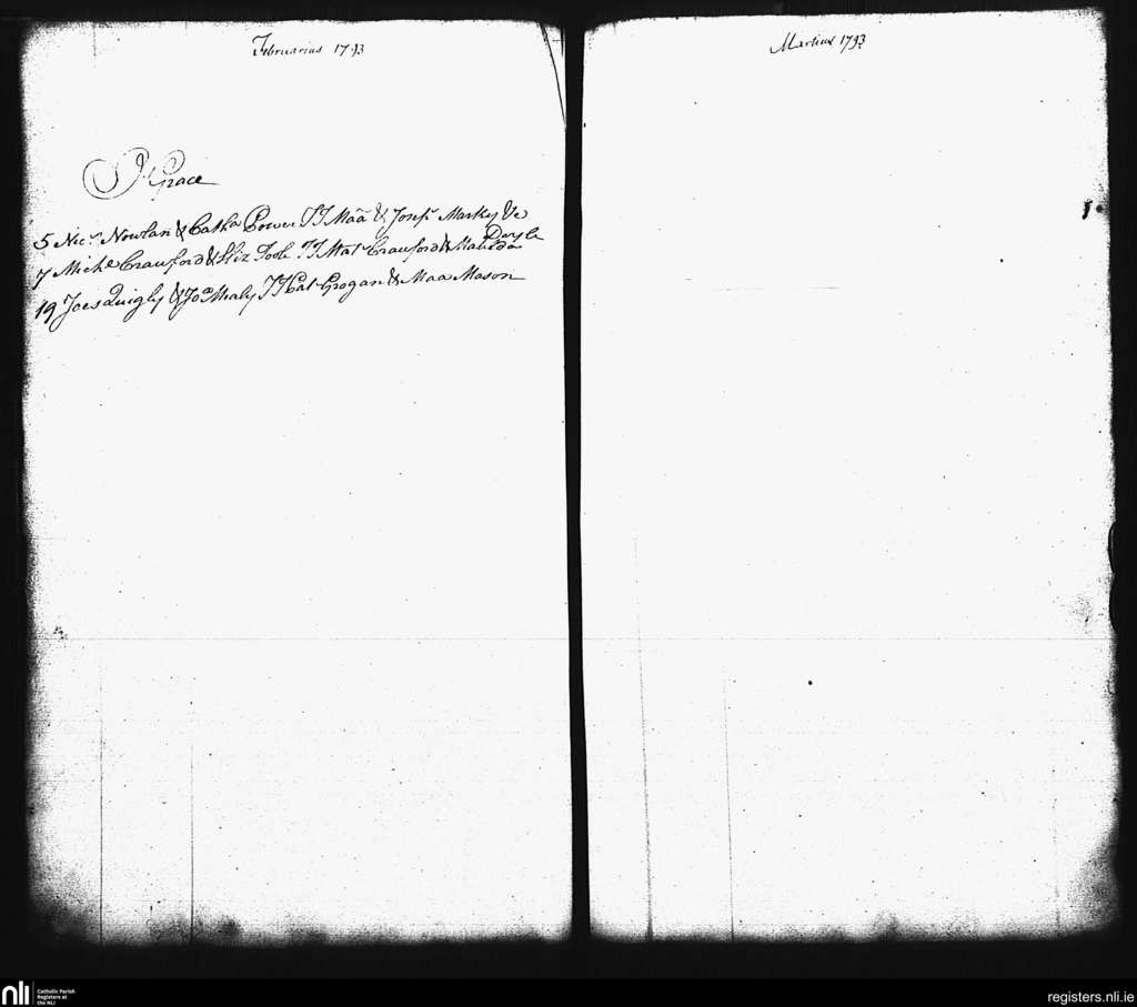St. Andrew's, Dublin city; County of Dublin; Archdiocese of Dublin. Marriages, Feb. 1793 to Mar. 1793