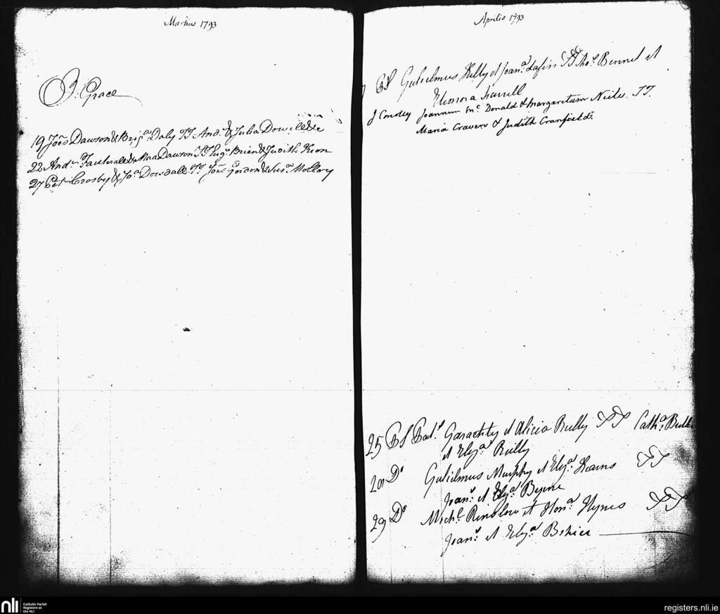 St. Andrew's, Dublin city; County of Dublin; Archdiocese of Dublin. Marriages, Mar. 1793 to Apr. 1793