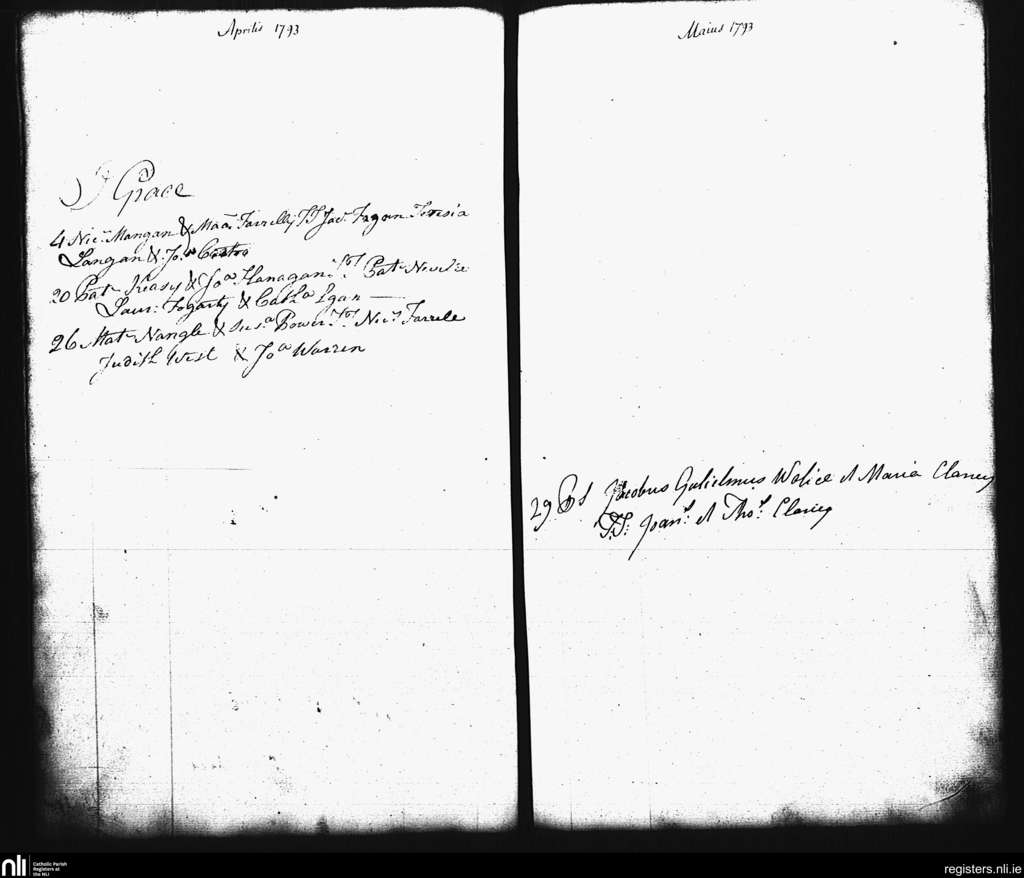 St. Andrew's, Dublin city; County of Dublin; Archdiocese of Dublin. Marriages, Apr. 1793 to May 1793