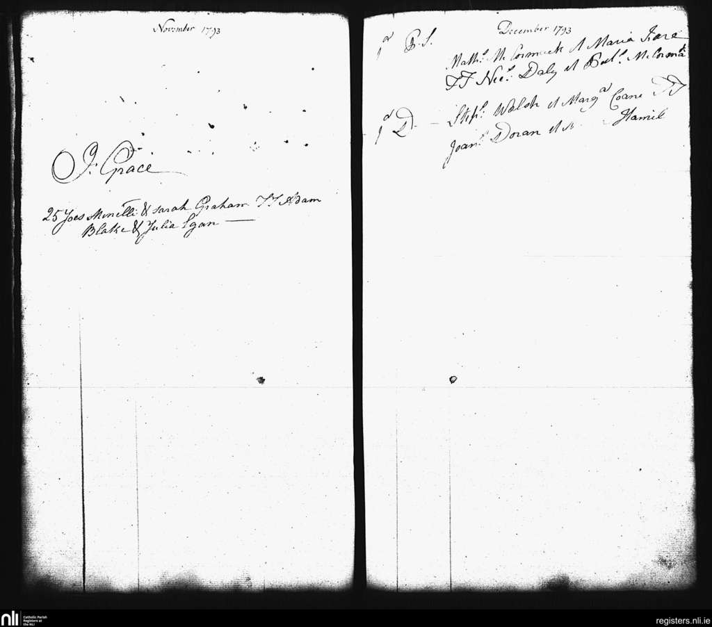 St. Andrew's, Dublin city; County of Dublin; Archdiocese of Dublin. Marriages, Nov. 1793 to Dec. 1793