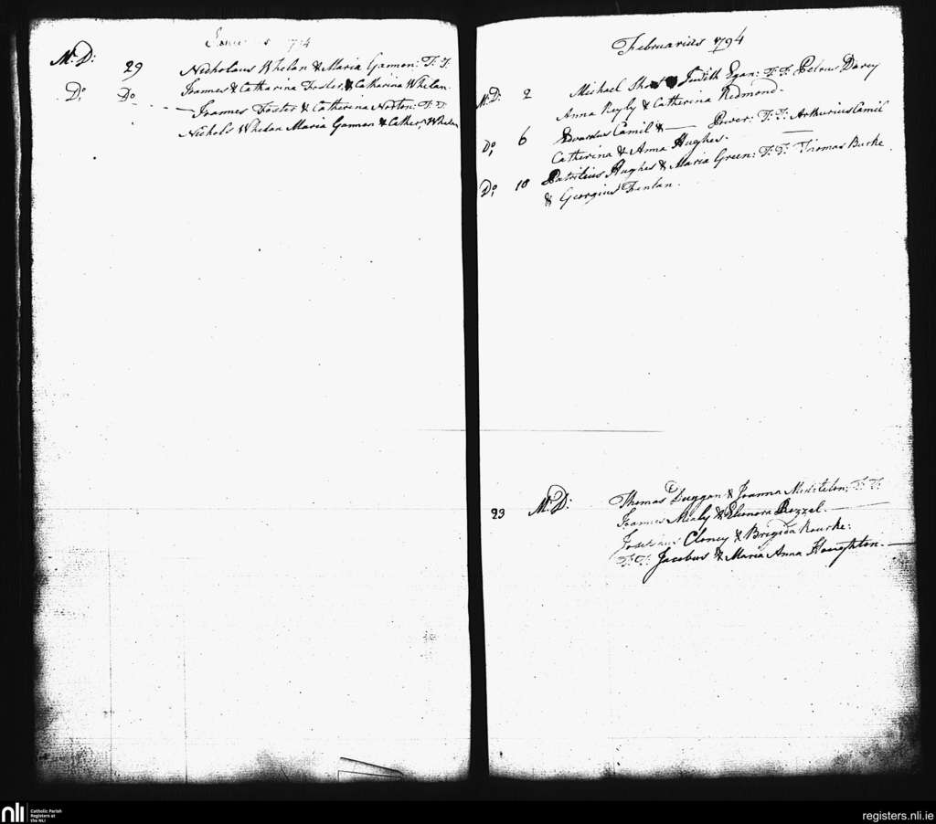 St. Andrew's, Dublin city; County of Dublin; Archdiocese of Dublin. Marriages, Jan. 1794 to Feb. 1794
