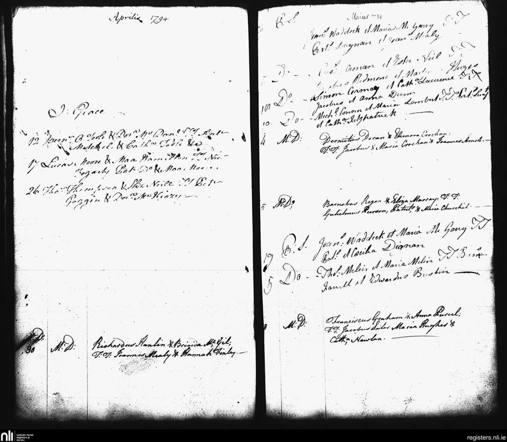 St. Andrew's, Dublin city; County of Dublin; Archdiocese of Dublin. Marriages, Apr. 1794 to May 1794