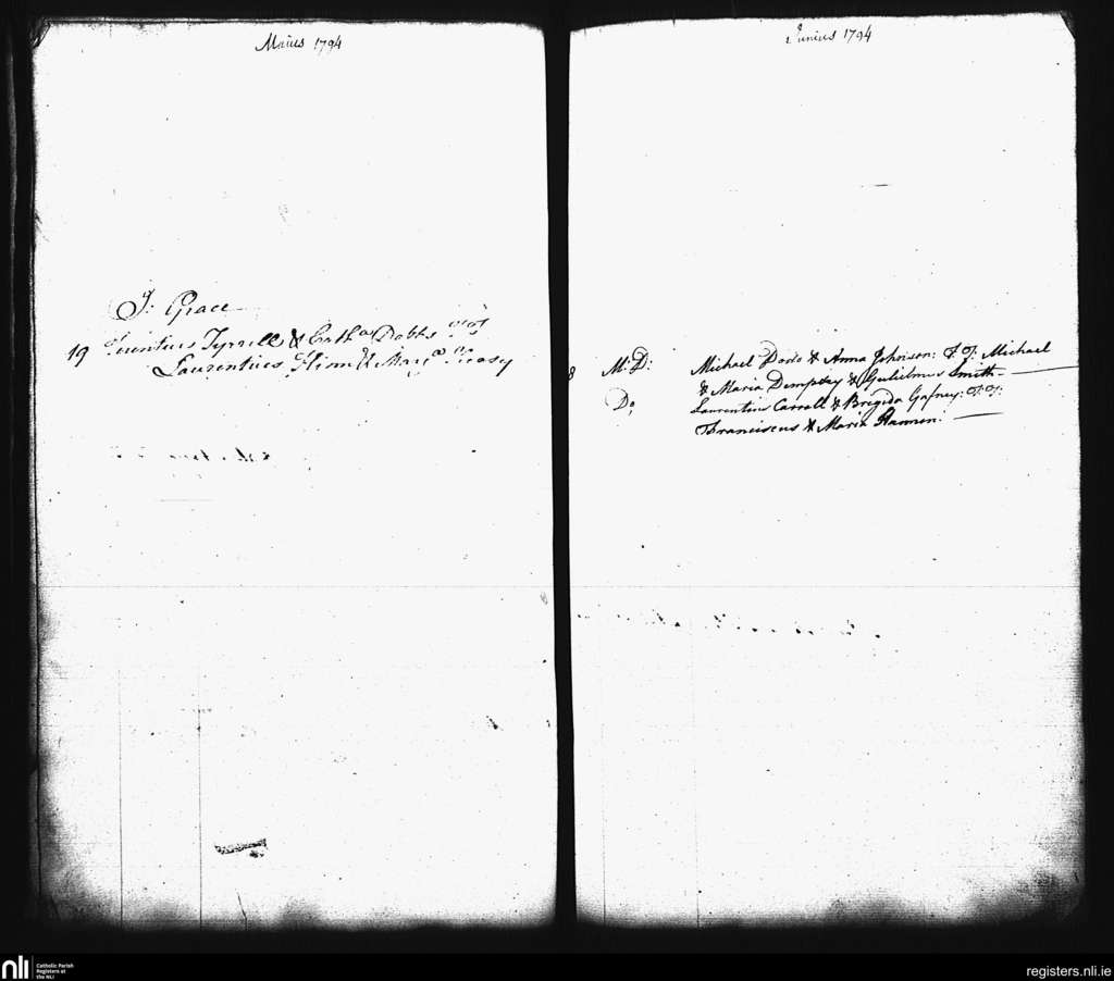 St. Andrew's, Dublin city; County of Dublin; Archdiocese of Dublin. Marriages, May 1794 to June 1794