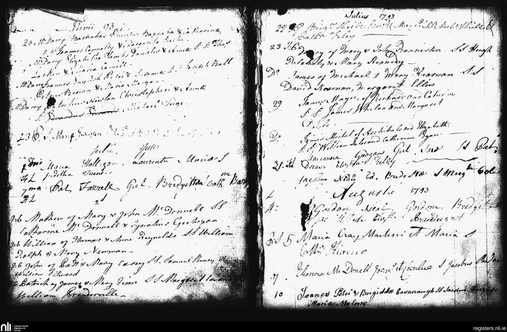 St. Andrew's, Dublin city; County of Dublin; Archdiocese of Dublin. Baptisms, June 1793 to Aug. 1793