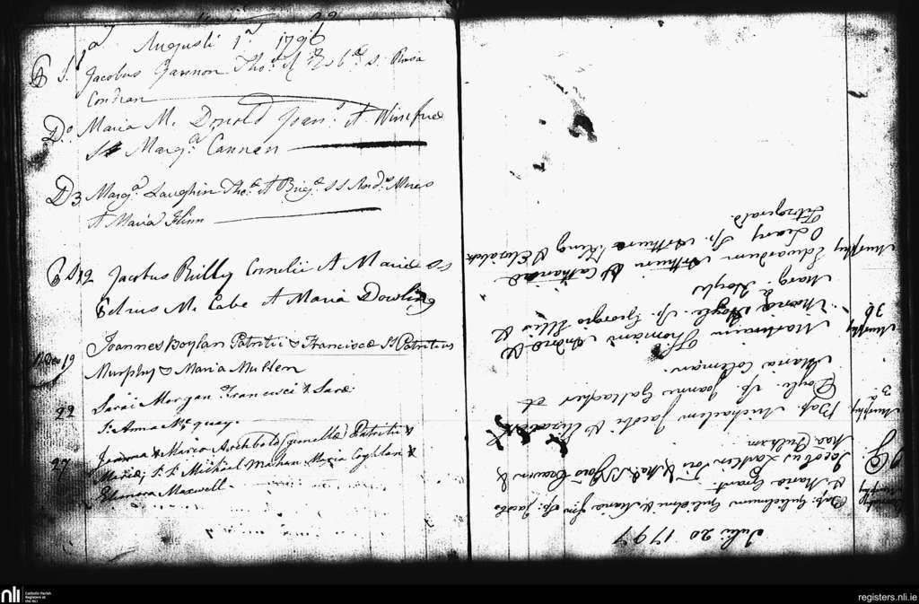 St. Andrew's, Dublin city; County of Dublin; Archdiocese of Dublin. Baptisms, Aug. 1796