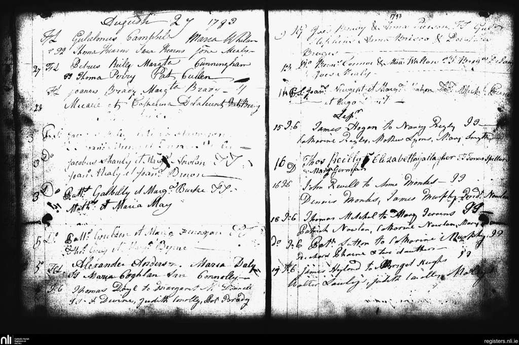 St. Andrew's, Dublin city; County of Dublin; Archdiocese of Dublin. Baptisms, Aug. 1793 to Sep. 1793