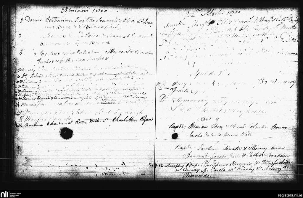 St. Andrew's, Dublin city; County of Dublin; Archdiocese of Dublin. Baptisms, Feb. 1800 to Apr. 1800