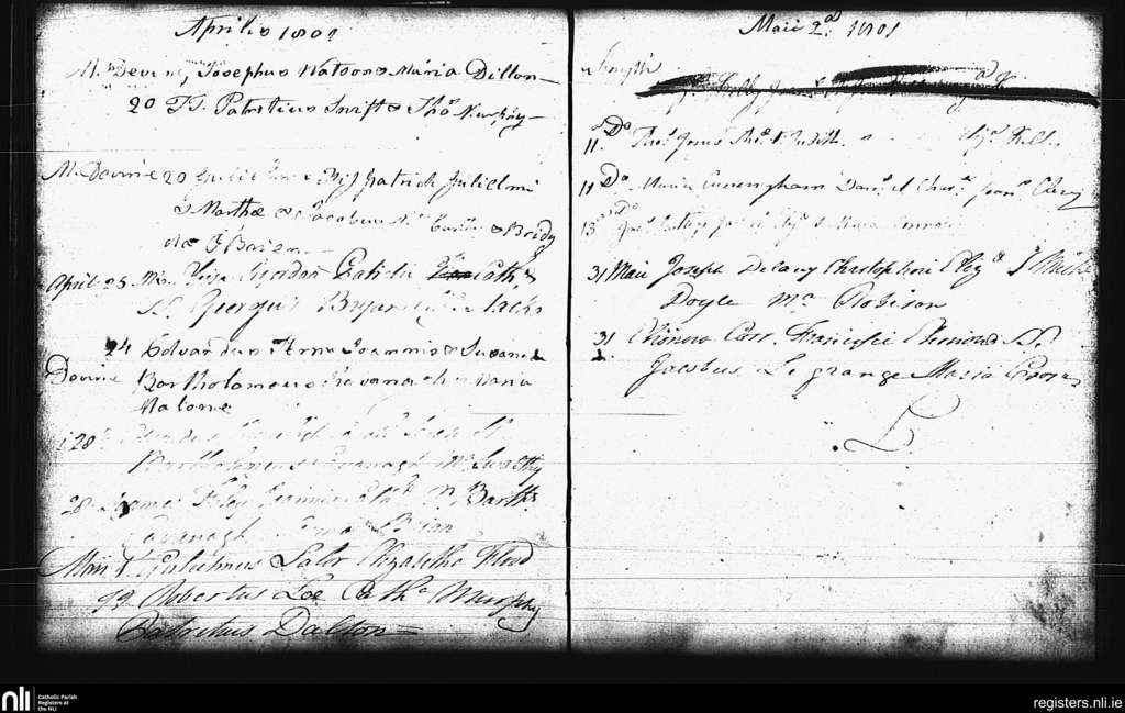 St. Andrew's, Dublin city; County of Dublin; Archdiocese of Dublin. Baptisms, Apr. 1801 to May 1801