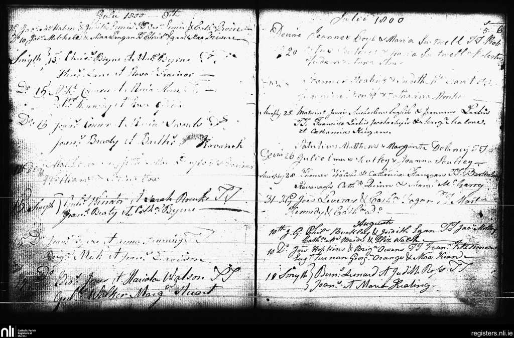 St. Andrew's, Dublin city; County of Dublin; Archdiocese of Dublin. Marriages, July 1800 to Aug. 1800
