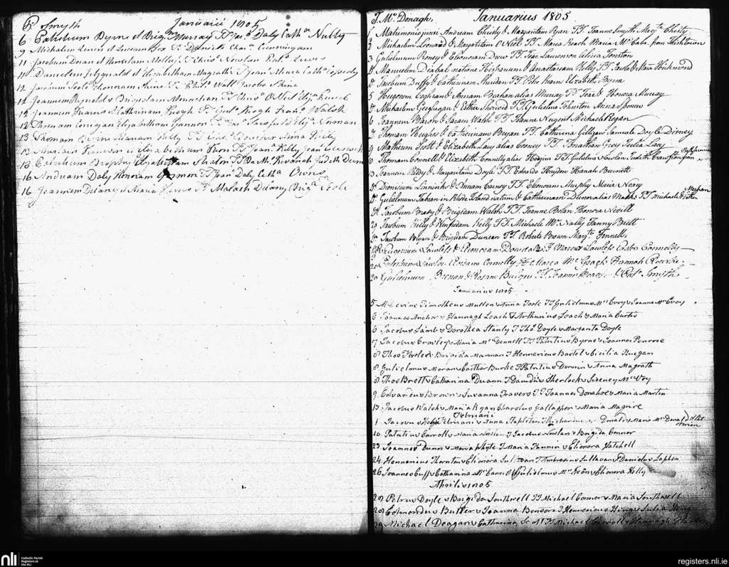 St. Andrew's, Dublin city; County of Dublin; Archdiocese of Dublin. Marriages, Jan. 1805 to Apr. 1805