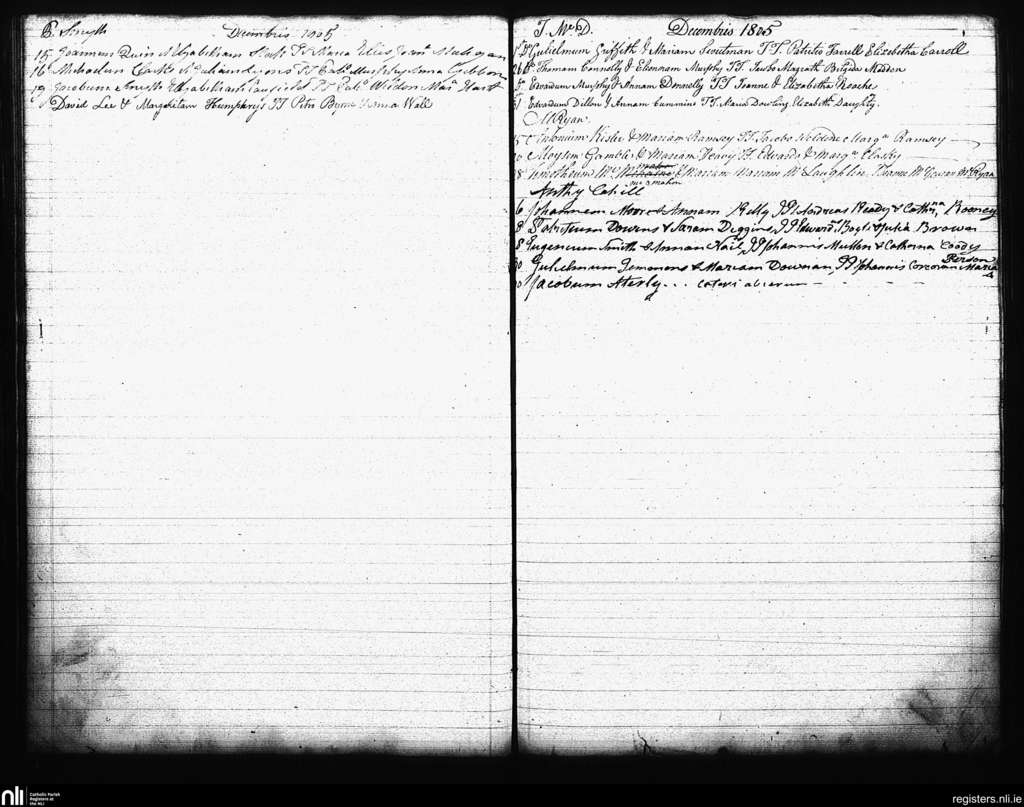 St. Andrew's, Dublin city; County of Dublin; Archdiocese of Dublin. Marriages, Dec. 1805