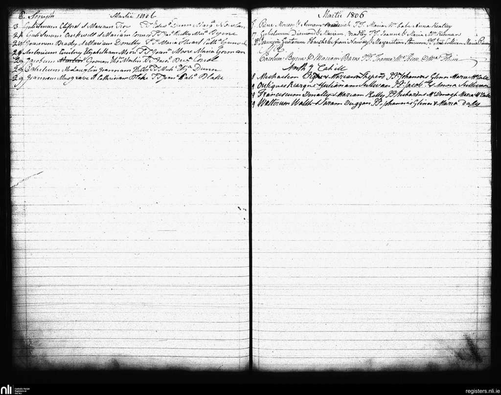 St. Andrew's, Dublin city; County of Dublin; Archdiocese of Dublin. Marriages, Mar. 1806