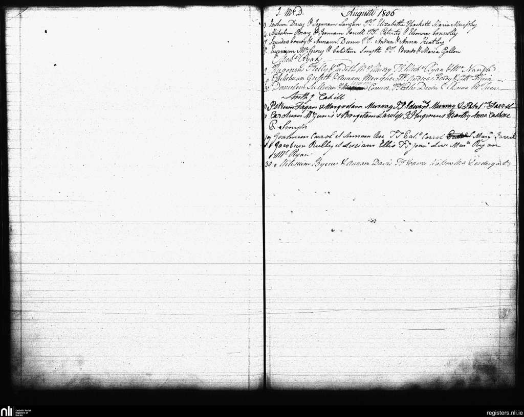 St. Andrew's, Dublin city; County of Dublin; Archdiocese of Dublin. Marriages, Aug. 1806